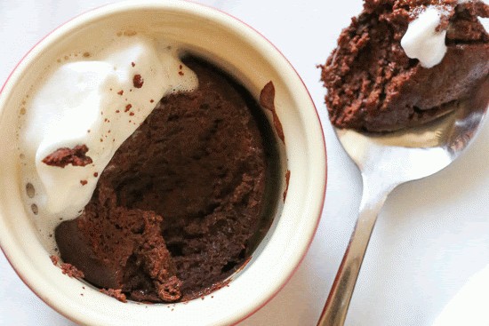 Pour it into 4 ounce ramekins and bake them until the rise. Last grab a spoon and dig in (oops, I added a little whipped cream for fun)!